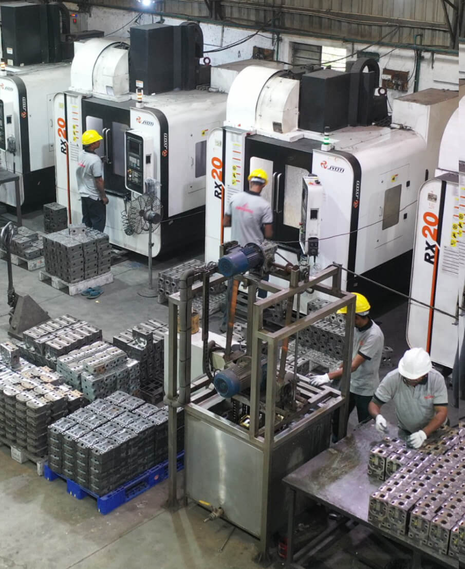 We manufacture up to 21000 cylinder heads per month, with component weights ranging from 5 kg to 80 kg. Our in-house machining and shell moulding casting facilities allow us to deliver precision-engineered products that meet international standards